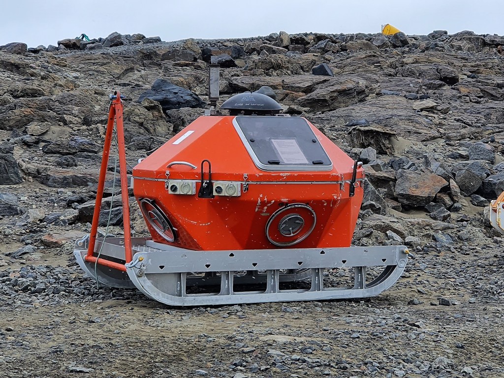 Above- multi-mobile generator pod, first deployed to Heard Island in 2003 – aluminium and fibreglass, pictured at Davis Research Station in 2020.